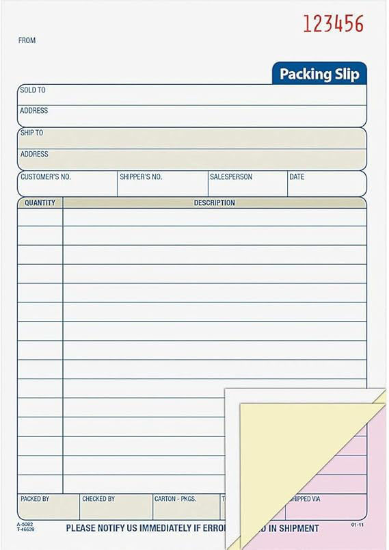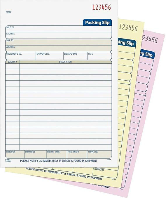 - Packing-slip book is a great way to ensure all shipments contain the correct paperwork.