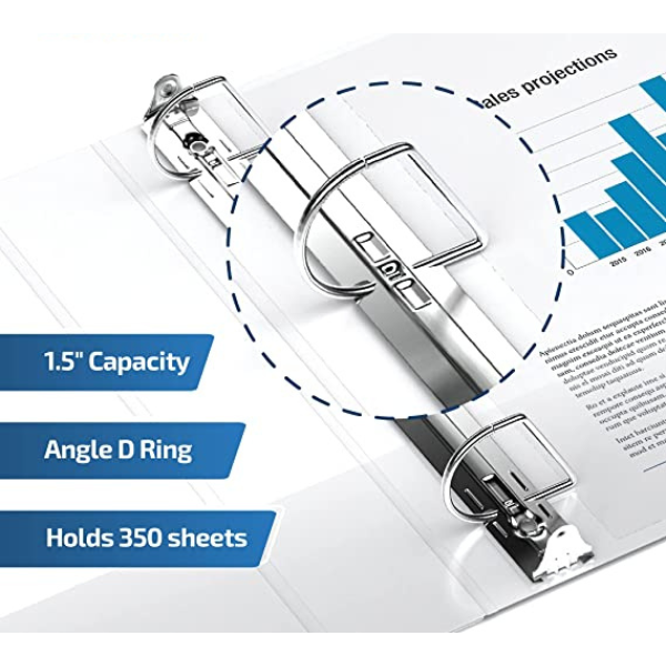 - 1.5-inch 3-Ring Binders with durable Slant-D rings that hold 25% more than round-ring binders.