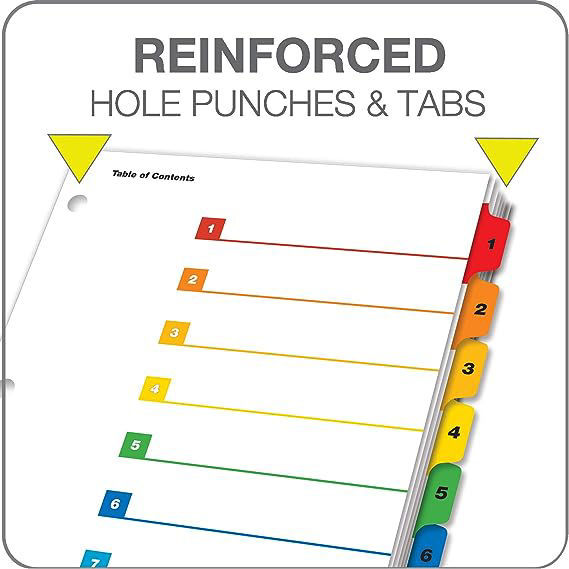 - Each divider features a reinforced table of contents page that allows for easy customization and indexing of specific content.