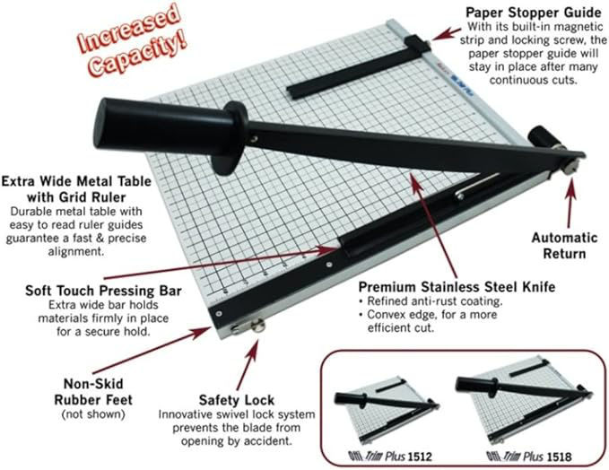 - With its 18" cutting length, it is suitable for trimming various paper sizes, making it ideal for home offices, classrooms, and small-scale projects.