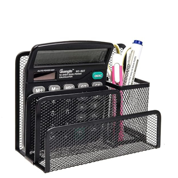 - This black desk organiser is made of high quality metal, scratch resistant, strong and durable, stable quality, no assembly required.