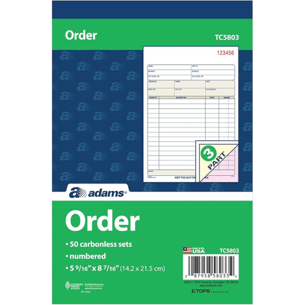 07-041A 8x5 Purchase Order Book (3) Carbonized #TC5831