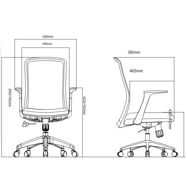 - Overall Diimensions: 640 W x 585 D x 890 (+95) H (mm)
