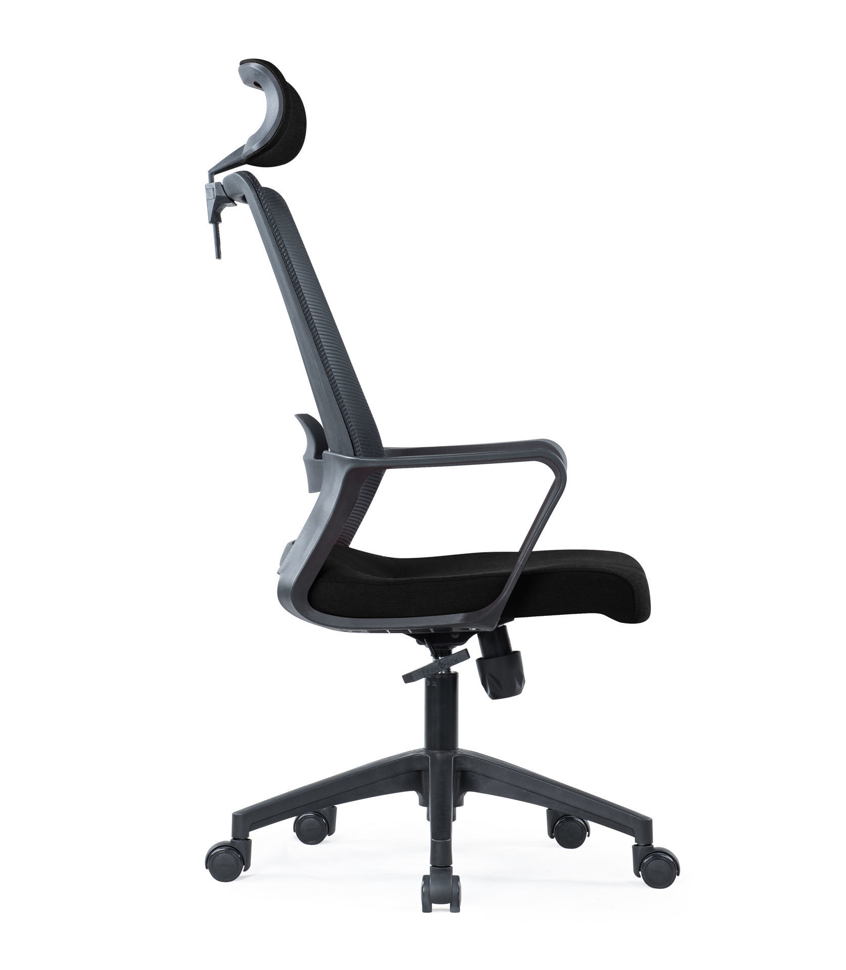 - This mesh office chair provides all-day comfort and support by the use of a high-density mesh back aith headrest and fabric seat. The breathable mesh chair provides cool and comfortable back support, enabling long hours sitting relaxed without sweat.