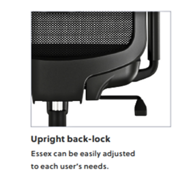 With a variety of ergonomic user adjustments and breathable black mesh back, the Essex chair provides users all day comfort.