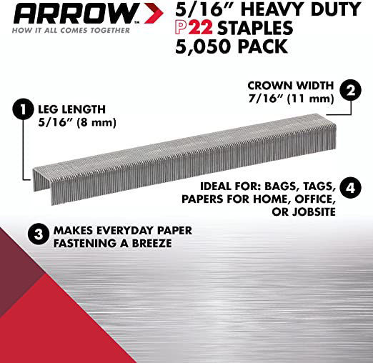 - These staples are designed to be used with the Arrow P22 plier-handle staple gun