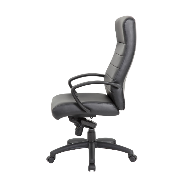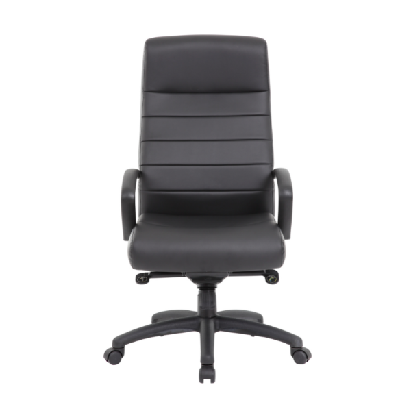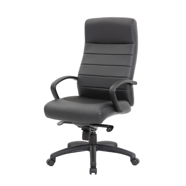 This high back executive chair brings comfort and stability to any office environment. It features beautiful and durable Caressoft upholstery and high-back styling with exemplary lumbar support with fixed arms. The chair has pneumatic gas lift seat height adjustment, an adjustable tilt tension control, a spring tilt mechanism, and locks in the upright position. Its large 27” 5 star nylon base provides stability while affording plenty of mobility thanks to its five hooded double wheel casters.