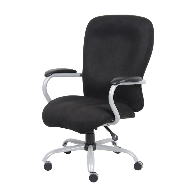 Our heavy duty executive chairs make the perfect addition to any office, board room, or study. Their 400 pound weight capacity renders them compatible with a broad range of different body types. They are beautifully upholstered in breathable black Caressoft and feature a black frame. Additionally, they sport padded arms oriented in steel wrap around style construction. In terms of personalization, the chair features improved pneumatic gas lift seat height adjustment, and a 2 paddle heavy duty spring tilt mechanism with tension control that can be locked anywhere within the tilt range.