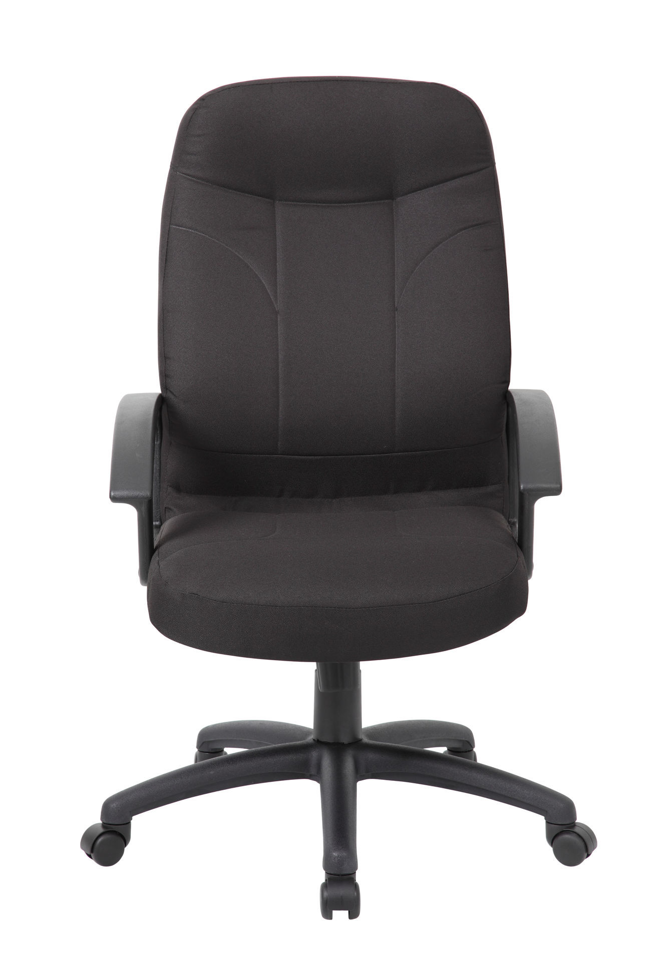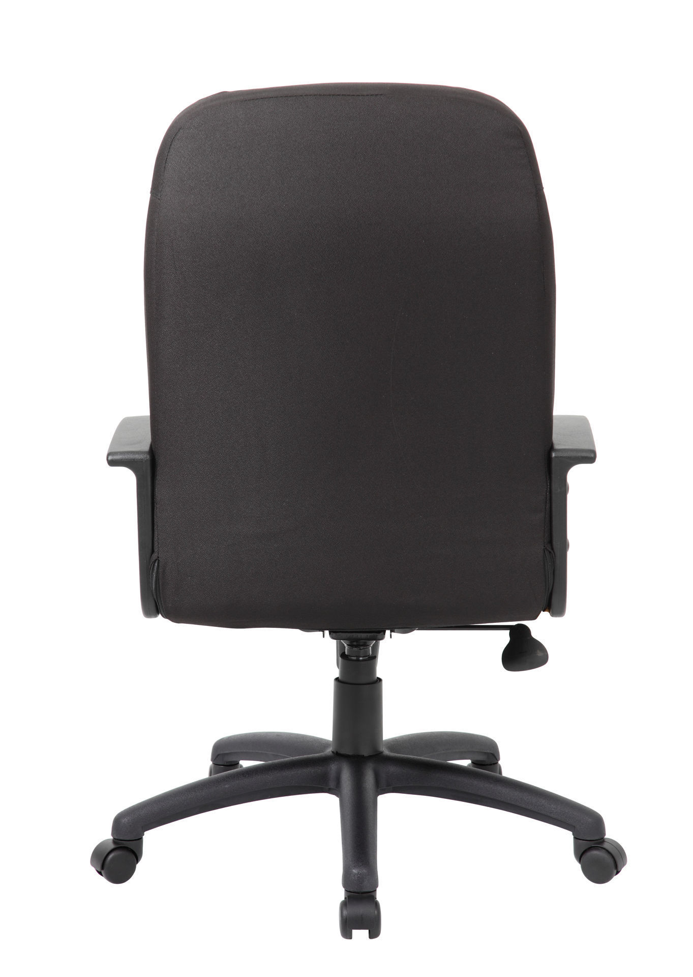 This executive high back chair is elegantly upholstered in black fabric. It has polypropylene arms and a matching 27-inch nylon base with five hooded double wheel casters. In addition to providing optimal stability, this chair can also be personalized for maximum comfort. Its upright locking position, pneumatic gas lift seat height adjustment, and adjustable tilt tension control let users customize the chair to their liking.