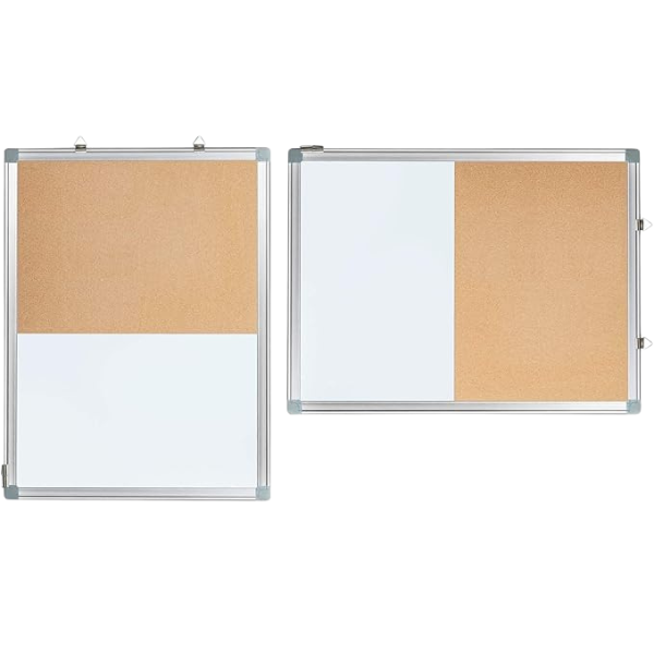 • Half dry erase board, with a smooth writing surface and an easy clean-up  Half bulletin notice board is equipped with easy to pin and remove thumbtacks without damage.