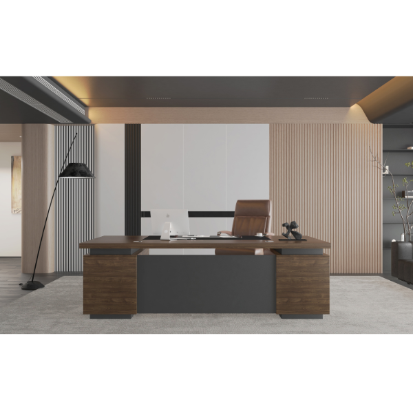 - This gorgeous executive desk unit works great as business furniture or for a home office. It provides ample space for all your office needs. This desk adds an modern elegant look to any office.