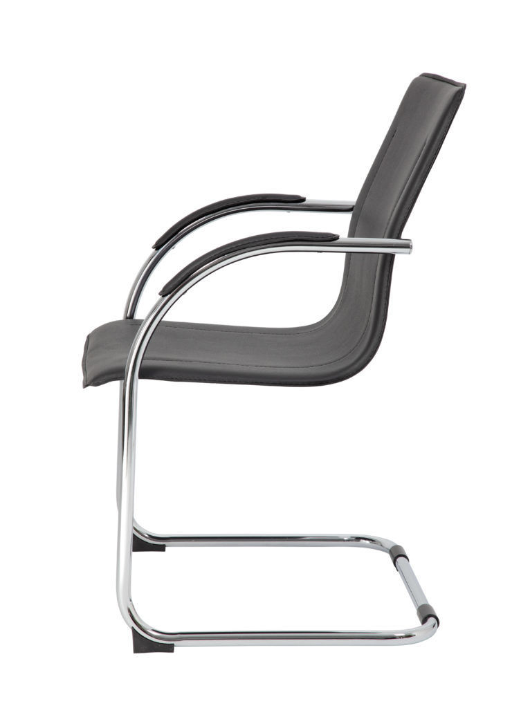 - The base of the chair is a chrome cantilever design and offers a weight capacity of 250 lbs. This chair is the perfect blend of class and professionalism, without sacrificing comfort or quality. This chair makes a great accompaniment to any office.