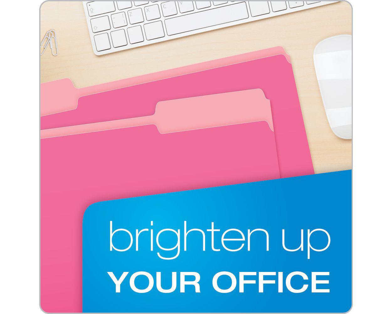 - Pendaflex Two-Tone Color File Folders come in brilliant shades with lighter interiors to prevent time-wasting misfiles. Create bright, color-coded files for fast, efficient filing. 1/3-Cut tabs. Legal size, pink.