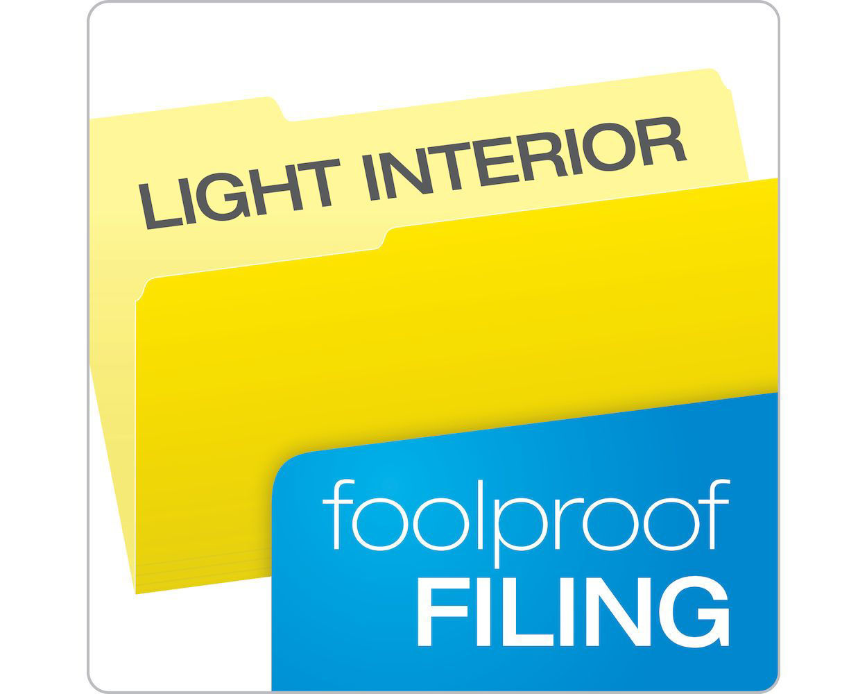 - Pendaflex Two-Tone Color File Folders come in brilliant shades with lighter interiors to prevent time-wasting misfiles. Create bright, color-coded files for fast, efficient filing. 1/3-Cut tabs. Legal size, yellow.