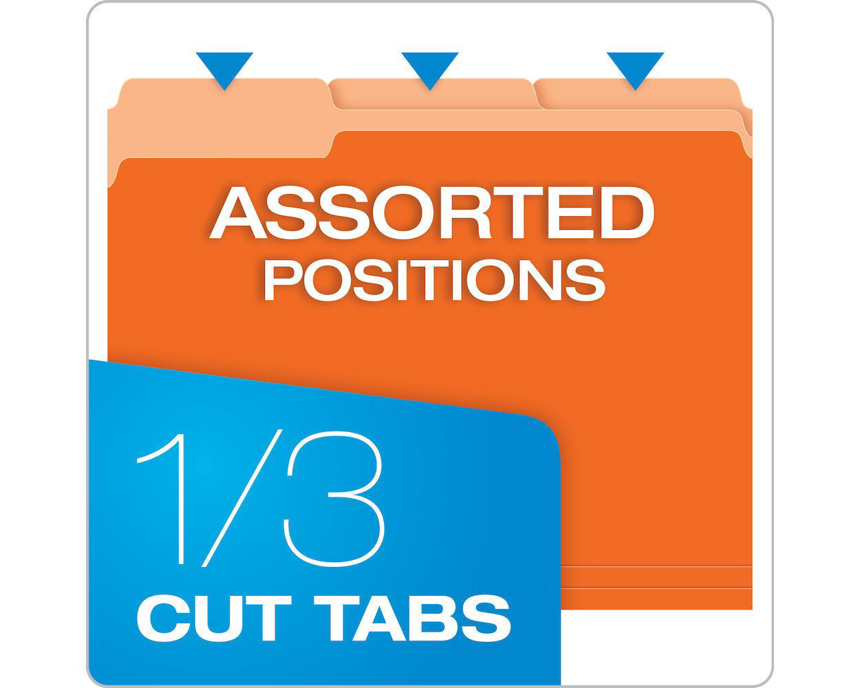 • Pendaflex Two-Tone Color File Folders come in brilliant shades with lighter interiors to prevent time-wasting misfiles. Create bright, color-coded files for fast, efficient filing. 1/3-Cut tabs. Letter size, orange.