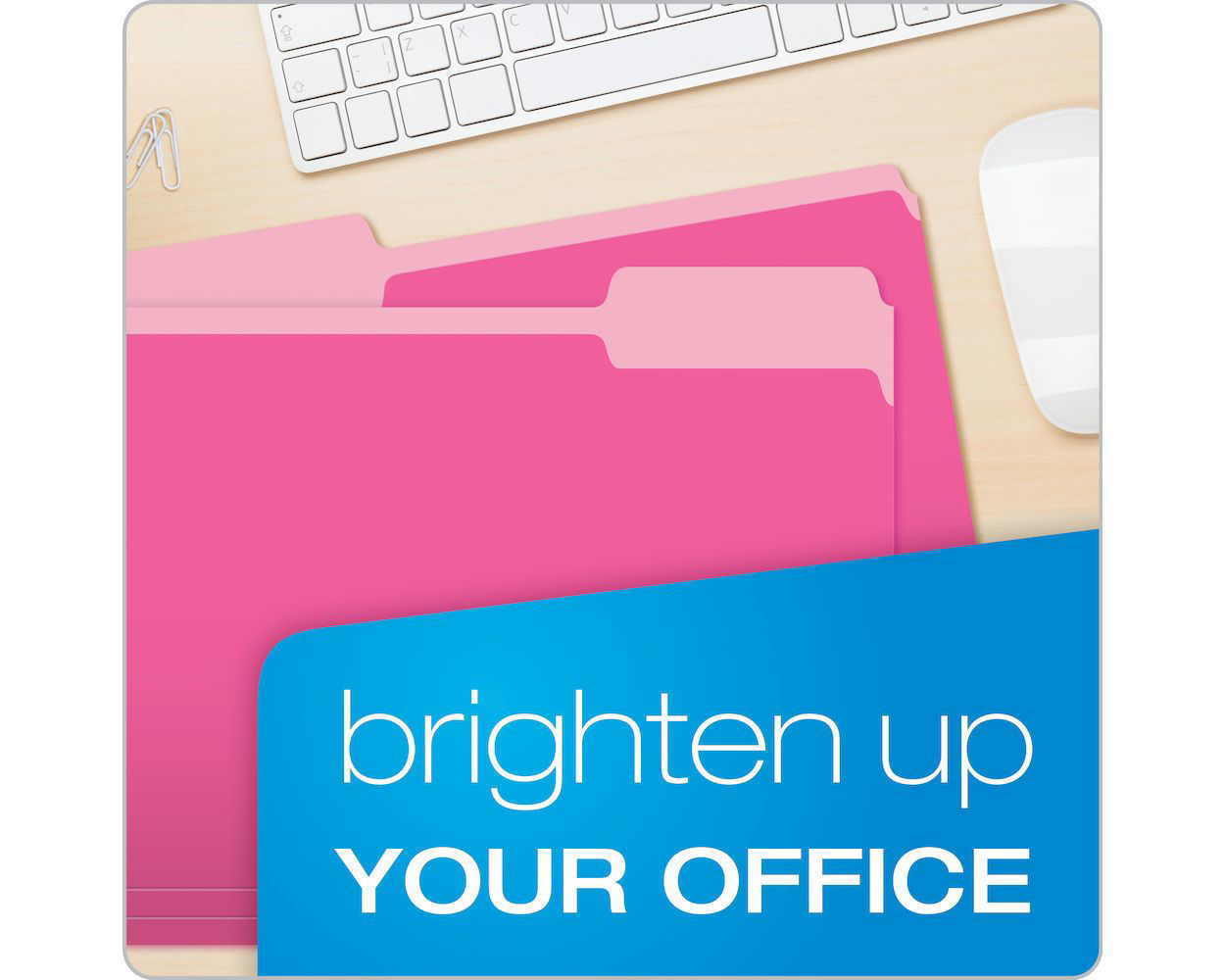 • Pendaflex Two-Tone Color File Folders come in brilliant shades with lighter interiors to prevent time-wasting misfiles. Create bright, color-coded files for fast, efficient filing. 1/3-Cut tabs. Letter size, pink.