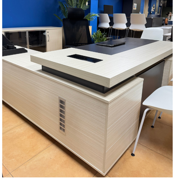 - This gorgeous desk unit works great as business furniture or for a home office requiring a large workstation. It provides ample space for your computer, monitor, printer, writing, study and other office activities. This executive desk adds an modern elegant look to any office.
