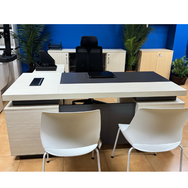 Royal 1800 x 2000 Exec. Desk with Side Cabinet - White Oak
