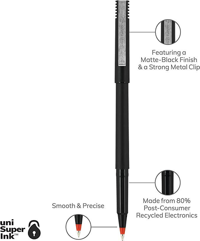 - Sturdy metal roller point with liquid ink ensures a flawless writing experience.