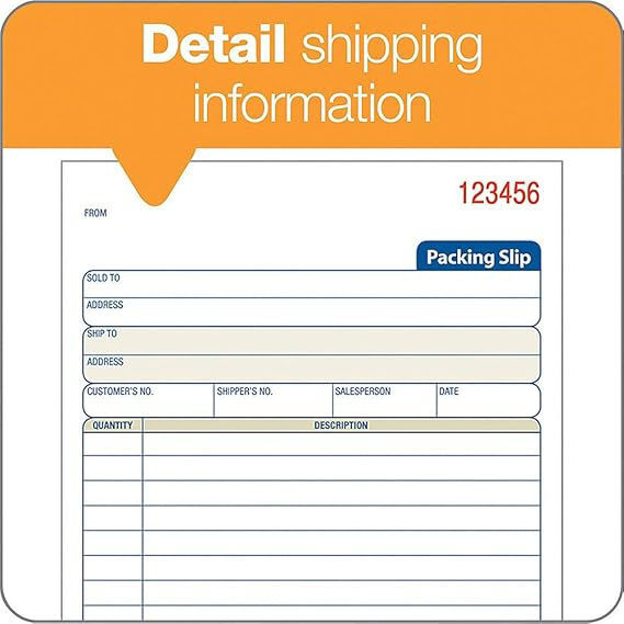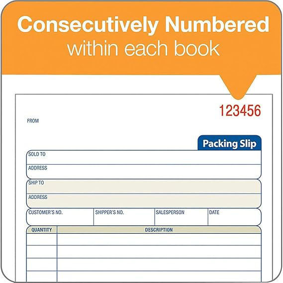 - Packing-slip book is a great way to ensure all shipments contain the correct paperwork.