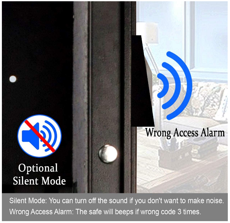 - If the wrong PIN code is entered more than 3 times the safe will beep and access will not be allowed. The sound can be turned off if required.