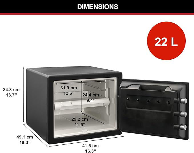 - Pry-resistant hinge bar reinforces the door of the safe for added protection against theft.