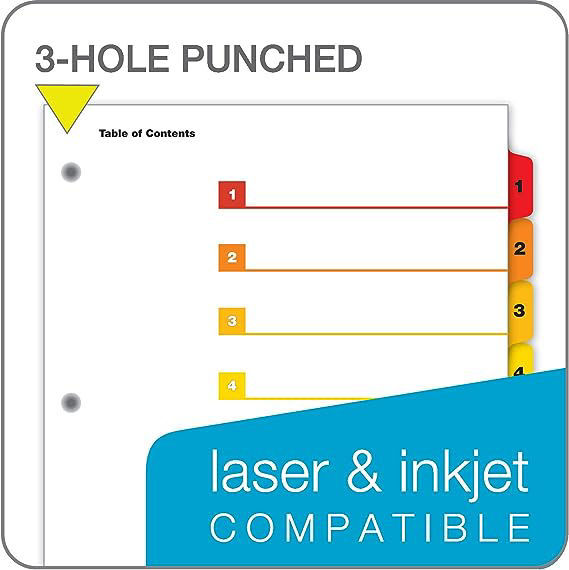 - Each divider features a reinforced table of contents page that allows for easy customization and indexing of specific content.