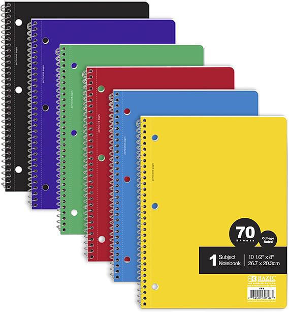 - 1-subject spiral notebooks come with 70 sheets of college-ruled paper.