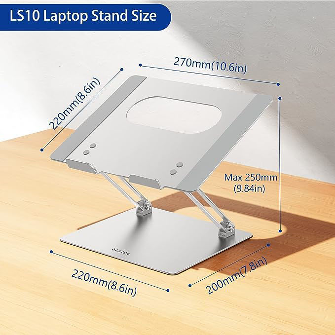 - The open aluminum design provides good ventilation and airflow to prevent your laptop from overheating. Thanks to the open design, you could also keep your laptop peripherals under the stand, such as keyboard, mouse and other office items.
