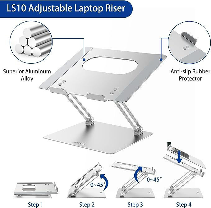 - The laptop stand is made of sturdy aluminum, you can incline at different angles and stand it up higher or lower depending on your needs.