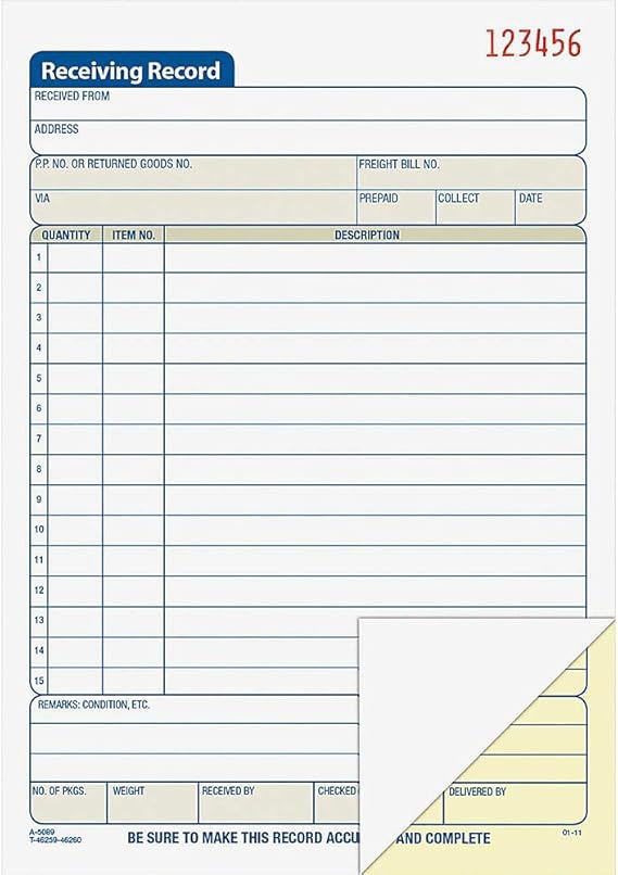 - Offers ample space for entering the name and address of the vendor and pertinent freight entries.