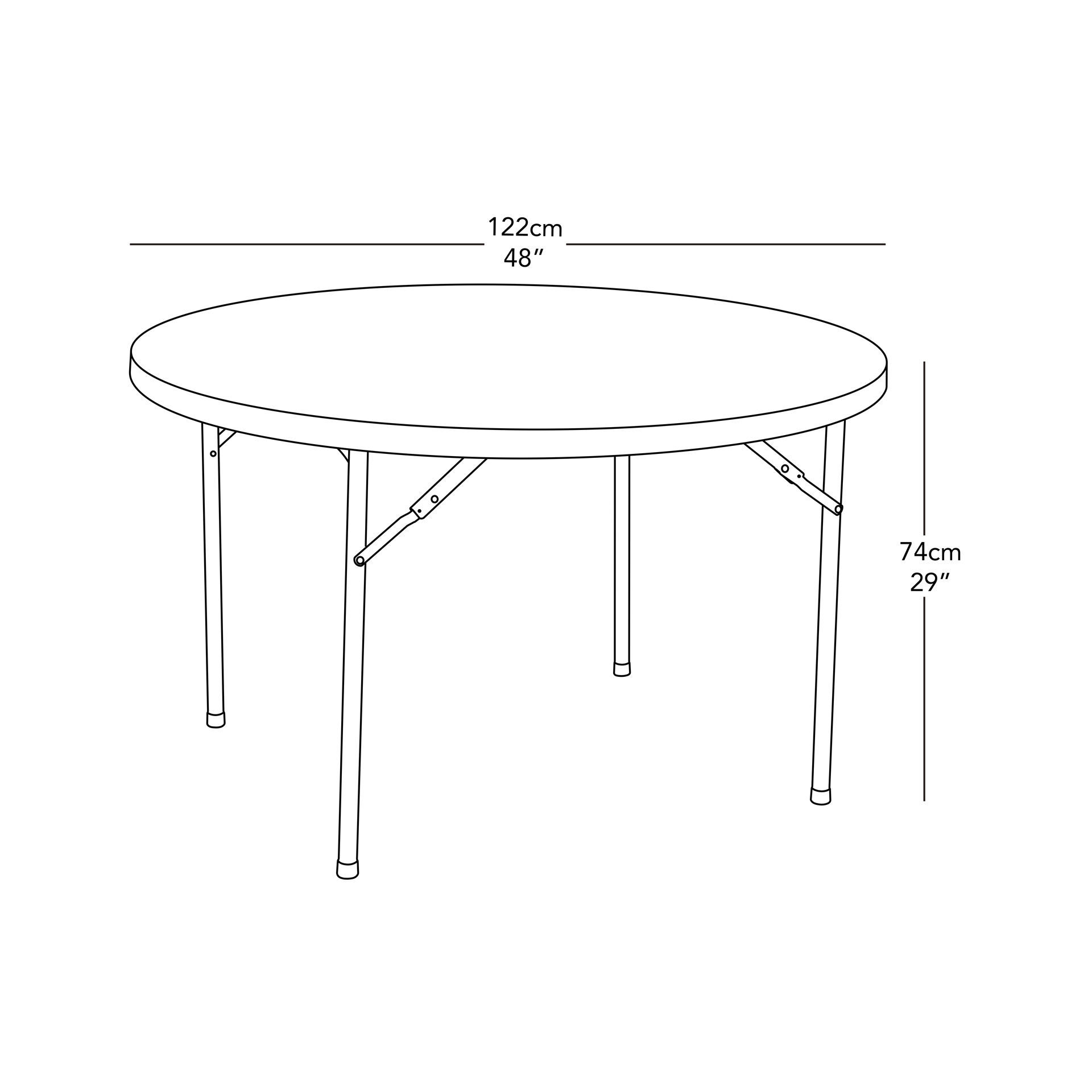 - Dimensions: 48" (diameter) x 29" H (inches)