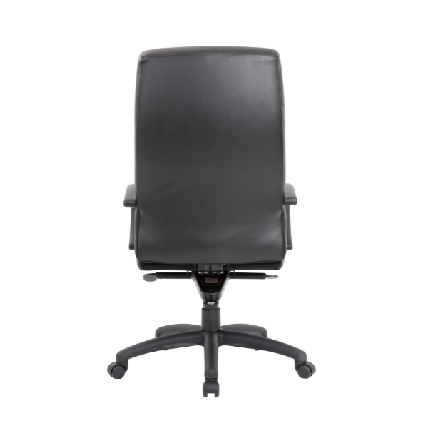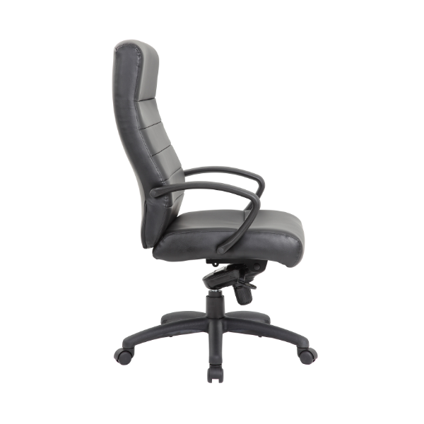 This high back executive chair brings comfort and stability to any office environment. It features beautiful and durable Caressoft upholstery and high-back styling with exemplary lumbar support with fixed arms. The chair has pneumatic gas lift seat height adjustment, an adjustable tilt tension control, a spring tilt mechanism, and locks in the upright position. Its large 27” 5 star nylon base provides stability while affording plenty of mobility thanks to its five hooded double wheel casters.