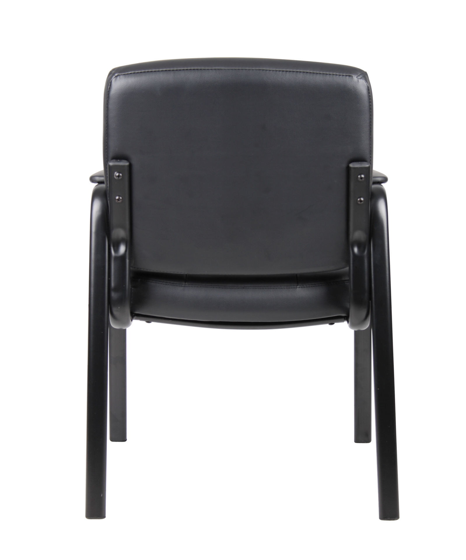This guest chair Is the perfect companion piece to any of our executive LeatherPlus chairs. Like its counterparts, it is beautifully upholstered with black LeatherPlus, a leather and polyurethane combination that provides softness and durability in equal measure. Its armrests are covered with Caressoft upholstery and its legs are constructed from black steel. It has an overall arm height of 26-inch, a seat size of 20-inch W x 17-inch D, and a seat height of 19.5-inch.
