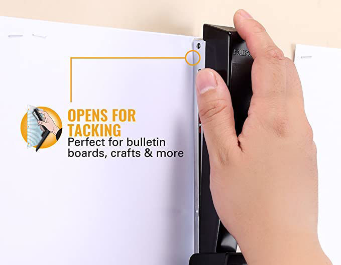 - Dual Clinch System for temporary (outward) or standard (inward) stapling