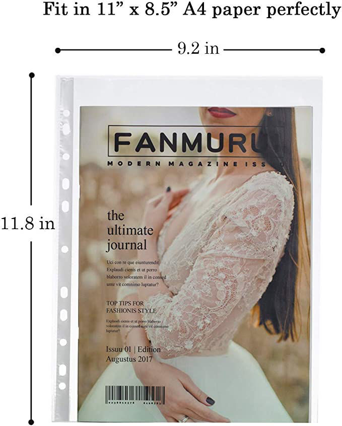 - Measurements: 100 top-loading plastic sheet protectors measured and fitted especially for A4 documents. These page protectors are designed with 11 holes to fit with a variety of ring binders.