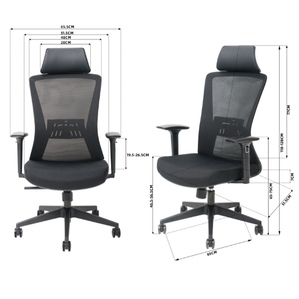 - This Ergonomic high-back mesh chair come with an adjustable headrest, 2 dimensional adjustable arms, adjustable lumbar support, hight adjustment and lockable back adjustment.