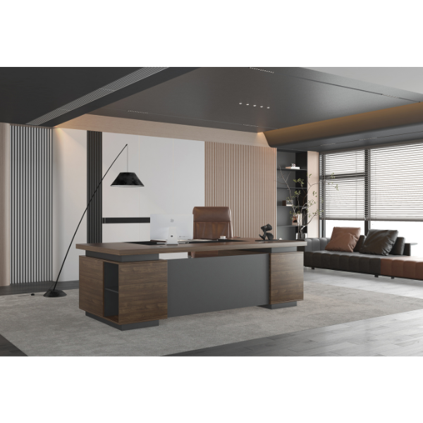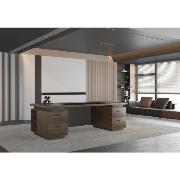 - This gorgeous executive desk unit works great as business furniture or for a home office. It provides ample space for all your office needs. This desk adds an modern elegant look to any office.