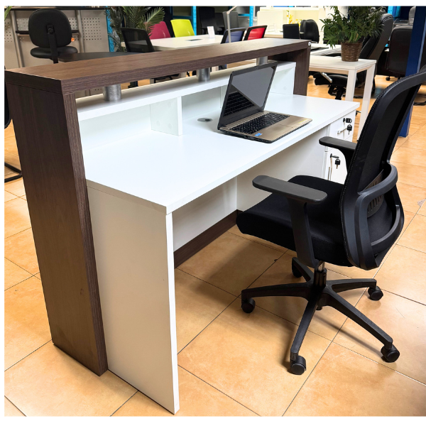 - Whether you run a health clinic, a trendy beauty salon, a bustling retail store, a high-end restaurant, or a vibrant office setting, this reception desk is built to suit any business type. Its modern design coupled with its functional layout makes it a perfect fit for any setting, with its understated yet remarkable statement of elegance.