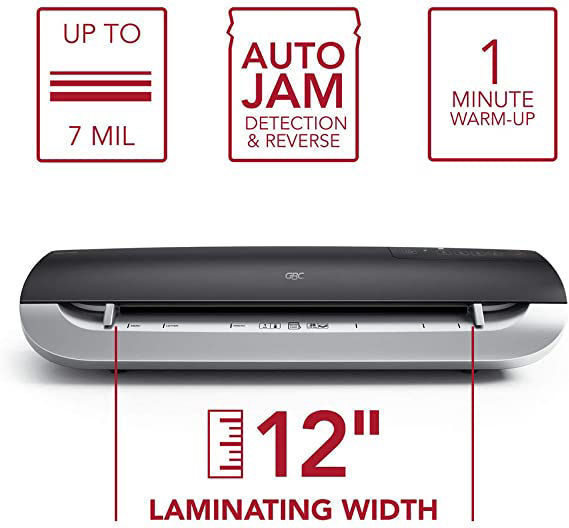 The 12" laminating width allows for a larger variety of projects, while smooth rollers help projects stay wrinkle-free. Compatible with any 3, 5 and 7 mil laminating pouches.