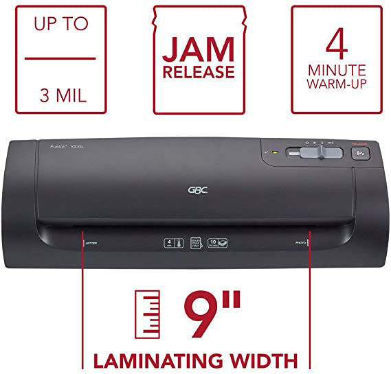 - The 9" laminating width allows for a variety of projects, while smooth rollers help projects stay wrinkle-free. Compatible with any 3 and 5 mil laminating pouches.