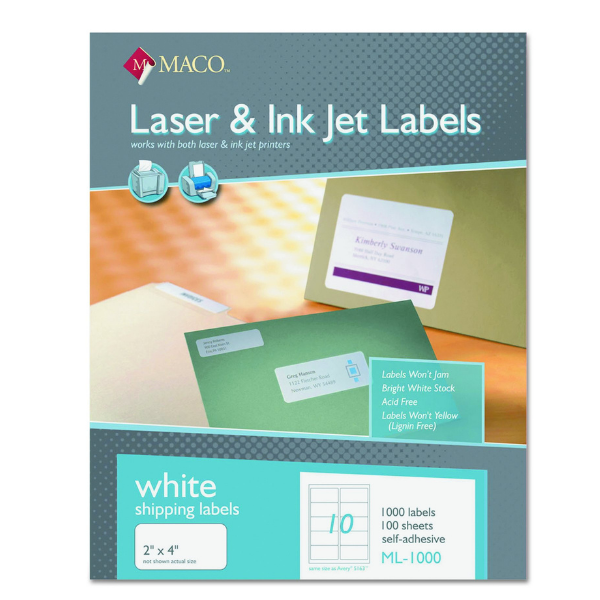 Maco Laser/Inkjet Labels 2x4 (250) #ML-1025