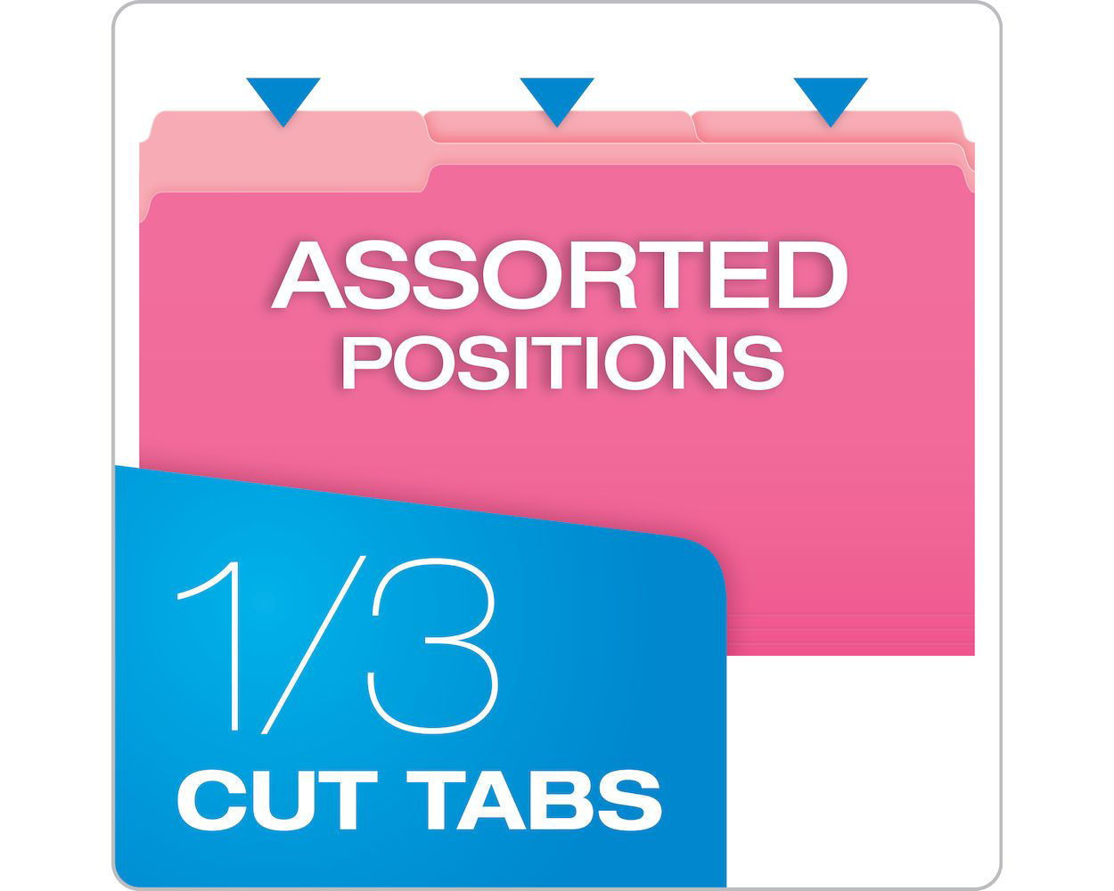 - Pendaflex Two-Tone Color File Folders come in brilliant shades with lighter interiors to prevent time-wasting misfiles. Create bright, color-coded files for fast, efficient filing. 1/3-Cut tabs. Legal size, pink.