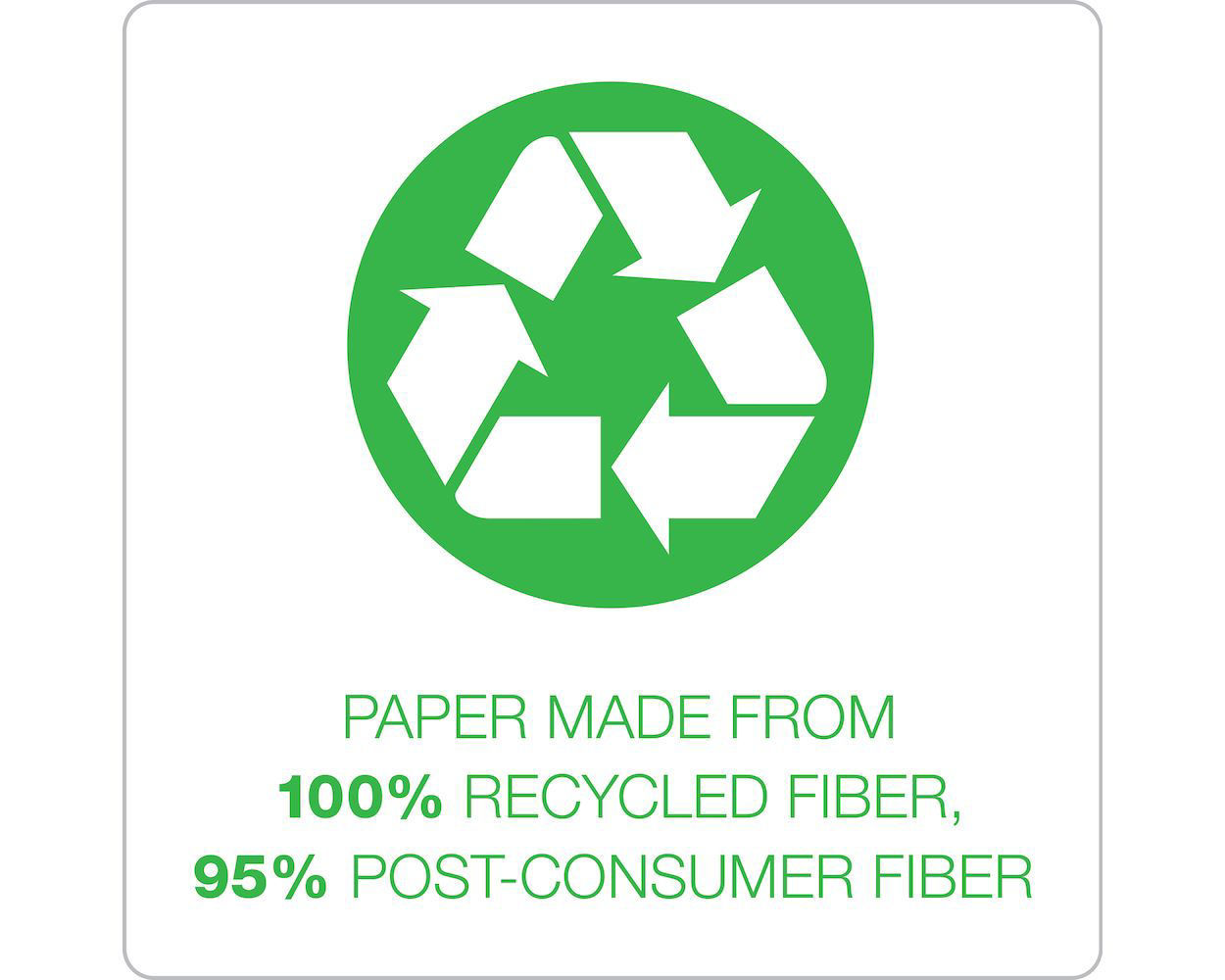 • Standard green folders are made from 100% recycled fiber with 95% post-consumer fiber.