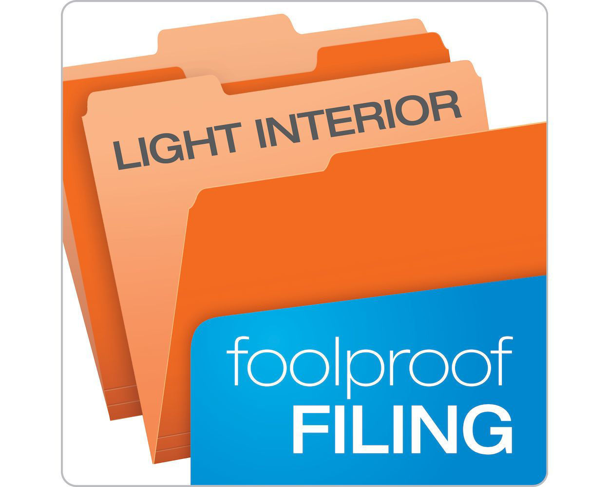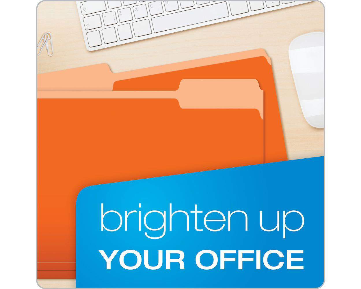 • Pendaflex Two-Tone Color File Folders come in brilliant shades with lighter interiors to prevent time-wasting misfiles. Create bright, color-coded files for fast, efficient filing. 1/3-Cut tabs. Letter size, orange.