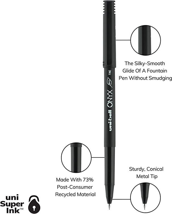 Made from 73% post-consumer recycled material, our writing pens are ideal for eco-conscious writers; Our ink pen also features a durable tip for unmatched attention to detail