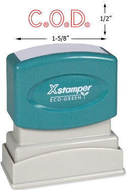 - The stamp is preconfigured with the letters "C.O.D.," which stands for Cash on Delivery. This text is commonly used to indicate that a shipment or delivery requires payment upon receipt.